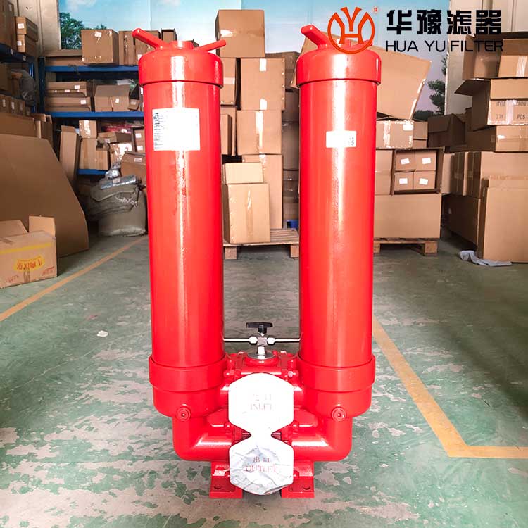 它的工作特點(diǎn)是當(dāng)一只過(guò)濾器濾芯堵塞需更換時(shí),不需要停止主機(jī)工作,只要打開(kāi)壓力平衡閥并轉(zhuǎn)動(dòng)換向閥,另一只過(guò)濾器即可參加工作,然后更換已堵塞的濾芯。