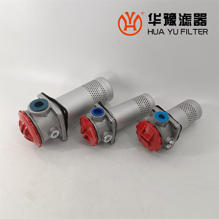 這種過濾器設(shè)有濾芯污染堵塞發(fā)訊器和油路旁通閥,當(dāng)回油壓力達到0.35MPa時,發(fā)訊器發(fā)出開關(guān)信號或報警,還可直接從發(fā)訊器的表盤上讀出回油壓力值,以提示操作人員及時更換濾芯,保證系統(tǒng)油液的清潔度。更換濾芯只需旋開過濾器端蓋即可。當(dāng)回油壓力上升至0.4MPa時,過濾器內(nèi)的旁通閥便自動卸荷,以避免回油壓力過高造成整個系統(tǒng)工作