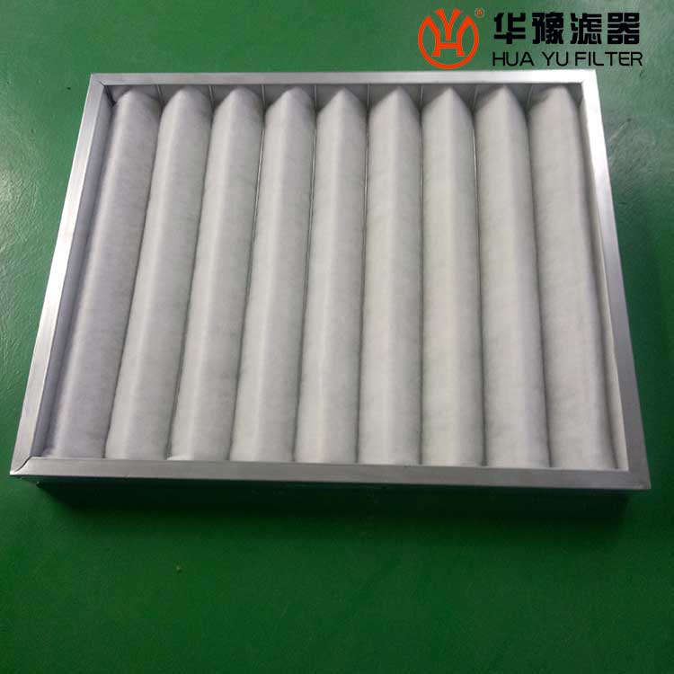 過濾材料是以折疊形式裝入高強度模且硬紙板內(nèi),迎風(fēng)面積增大,流入空氣中的塵埃粒子被過濾材料有效阻擋在褶與褶之間,潔凈空氣從另一面均勻流出,因此氣流通過過濾器是平緩和均勻的。
